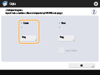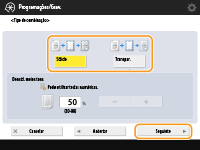 Se pretender sobrepor a imagem de formato no verso ao fazer uma cópia frente e verso, configure em <Verso>. Para sobrepor a mesma imagem de formato como a frente, carregue em <Igual à frente>. Para sobrepor uma imagem de formato diferente da frente, carregue em <Prog.> e avance para o passo 5.