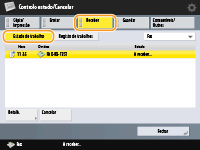 Quando é utilizada gestão de autenticação pessoal, pode impedir que os utilizadores efetuem operações nos trabalhos de outros utilizadores no ecrã <Controlo estado/Cancelar>. <Restringir acesso a trabalhos de outros utilizadores>