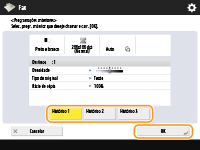 Pode guardar uma combinação especificada de destino, digitalização ou envio, antes de carregar em  (Iniciar) como um grupo único de Configurações Anteriores.