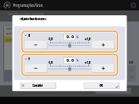 Se o tamanho da imagem copiada for ligeiramente diferente do original, utilize o seguinte procedimento para efetuar o ajuste fino do tamanho da imagem. Pode ajustar a ampliação da largura horizontal e da largura vertical, respetivamente.