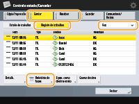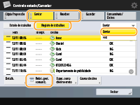 (Programações/Gravação) <Progs de gestão> <Gestão do dispositivo> <Restringir acesso a trabalhos de outros utilizadores> estiver definido como <Ligado>, os trabalhos, que não os do utilizador com sessão iniciada, são apresentados como "***" e não podem ser controlados. Se iniciar sessão com privilégios de administrador, os trabalhos de todos os utilizadores são apresentados. |