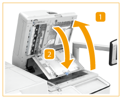 Abra o alimentador e, em seguida, abra a tampa da área de leitura.