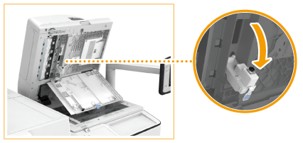 Puxe a alavanca acima do alimentador e abra a tampa da área de leitura.