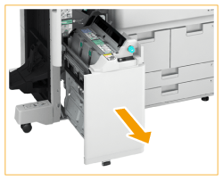 Siga o procedimento descrito nesta secção para substituir a caixa de agrafos da unidade de finalização-agrafamento para a unidade opcional Booklet Finisher-V.