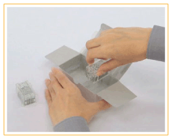 Insira a nova caixa de agrafos na cartridge de agrafos.