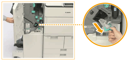 Substituir a caixa de agrafos no agrafador (Staple Finisher-V/Booklet Finisher-V)