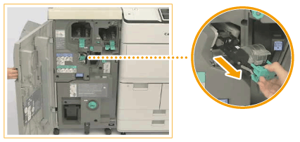 Substituir a caixa de agrafos no agrafador (Staple Finisher-X/Booklet Finisher-X)