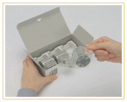 Retire o selo que mantém os agrafos juntos, depois de colocar a caixa de agrafos na cartridge de agrafos.