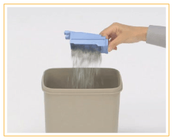 Segure na patilha azul claro do tabuleiro de desperdícios de agrafos e puxe-a para fora a direito.