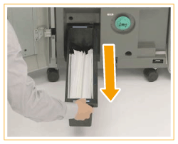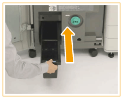 Siga o procedimento descrito nesta secção para eliminar os desperdícios de corte de Inner Booklet Trimmer-A que está instalado na unidade opcional Booklet Finisher-X.