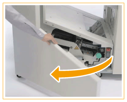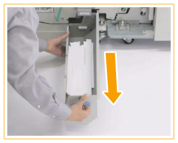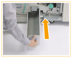 Siga o procedimento descrito nesta secção para eliminar os desperdícios de corte da unidade opcional Booklet Trimmer-D.