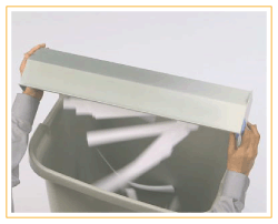 Segure na pega do tabuleiro de desperdícios de corte e puxe-a cuidadosamente na sua direção.
