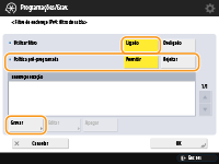 Se <Rejeitar> estiver selecionado para <Política pré-programada>, as limitações não se aplicam ao envio para endereços de transmissão ou multicast.