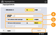 Para verificar um nome comum no certificado do servidor, selecione <Ligado> em <Verif. nome servidor autenticação> e introduza o nome do servidor de autenticação gravado pelo utilizador com sessão iniciada em <Nome servidor autenticação>.