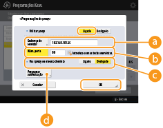 Para utilizar a função de autenticação do servidor proxy, carregue aqui e configure as informações de autenticação. No ecrã apresentado, carregue em <Ligado>, introduza o nome de utilizador e a palavra-passe a utilizar na autenticação do proxy e carregue em <OK>.
