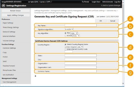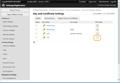 [Key and Certificate Settings].