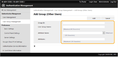 Selecione [Add Group (Other Users)...] se a autenticação de servidor estiver programada.