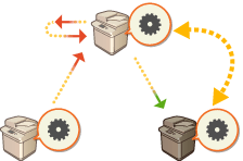 Altere o endereço do servidor de destino em [Synchronize Custom Settings] na Remote UI (UI Remota) de cada máquina cliente e inicie a sincronização de programações personalizadas. Especificar programações detalhadas de sincronização (Máquina servidor ou máquina cliente/servidor)