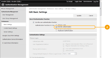 Selecione a caixa de verificação de [Keyboard Authentication].