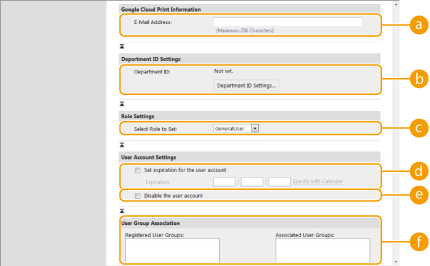 Ao estabelecer um período de validade para a conta, selecione a caixa de verificação e introduza um valor para [Expiration].