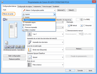 Para imprimir o documento com a opção Trabalho em espera, precisa de enviar o documento como um trabalho de impressão para Trabalho em espera a partir do driver instalado no computador.