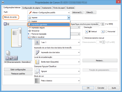 Os trabalhos de impressão agendada são executados de acordo com a hora especificada na máquina. Confirme previamente que a hora programada na máquina corresponde à hora do computador.