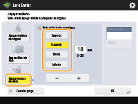 Se pretender ajustar a largura de cada rebordo de modo independente, carregue em <Apagar moldura do original> ou em <Apg moldura do livro> e, em seguida, carregue em <Ajustar livremente> para introduzir as larguras a apagar.