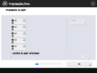 Para obter informações sobre o ecrã e instruções sobre como alterar as programações, consulte Especificar o formato e o tipo de papel no deck/gaveta para papel.