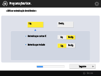 Carregue em <Ligado> para <Usar autent. utilizador>, carregue em <Ligado> para o método de início de sessão a utilizar e, por último, carregue em <Seguinte>.