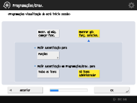 Selecione a duração de tempo para apresentar o ecrã de início de sessão. Se selecionar <Mostrar qdo funç. selecion.>, carregue em <Funções>, selecione a função cujo ecrã de início de sessão pretende visualizar e carregue em <OK>. Além disso, selecione os itens de programações no ecrã <Programações/Grav.> cujo ecrã de início de sessão pretende visualizar.
