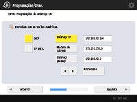 Para obter o endereço IP automaticamente, carregue em <DHCP> ou <IP auto.> e carregue em <Seguinte> ou <OK>.