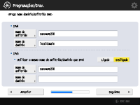 Carregue em <Ligado> para <Utilizar IPv4> ou <Utilizar IPv6> e depois em <Seguinte>. Também pode utilizar IPv4 e IPv6 simultaneamente.