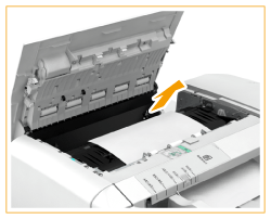 O documento encravado desloca-se para o tabuleiro de saída de documentos.