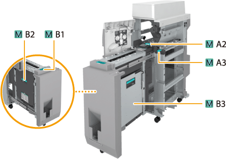 Volte a colocar a unidade de dobragem do papel (M-B1) na posição original.