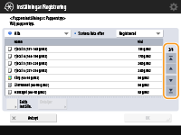 Om det finns flera jobb/filer i en lista kan du sortera listan genom att trycka på <Namn> eller <Datum/tid>. Om visas, visas alternativen i stigande ordning och om visas, visas alternativen i fallande ordning.