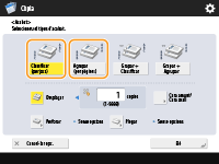 <Separador de treballs entre grups>Configuració de les opcions de <Fitxers desats>La funció d'acabat només es pot utilitzar quan imprimiu un fitxer PDF/XPS o un fitxer emmagatzemat a la bústia.