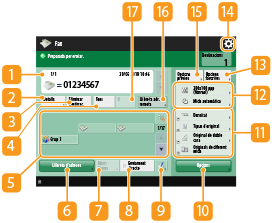 Mostra el nom de la destinació especificada, el número de fax, el nombre de destinacions i l'hora actual.