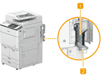 Hvis meddelelsen <E602-0001> vises på touchpanelet, når maskinen starter, er der måske ikke sat en harddisk i harddiskholderen. Sluk for strømmen til maskinen, tjek, om hovedstrømsindikatoren på betjeningspanelet er slukket, og tjek, om harddisken er sat i. Hvis fejlmeddelelsen stadig vises, også når der er sat en harddisk i, skal du kontakte Canon Danmark.