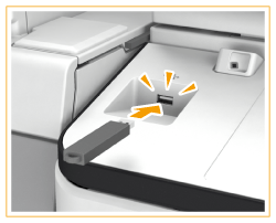 Sørg for, at USB-hukommelsesenheden vender korrekt, når du slutter den til maskinen. Hvis det ikke er tilsluttet korrekt, kan der opstå skade på USB-hukommelsesenheden eller på maskinen.