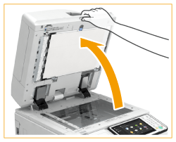 Hvis et kraftigt dokument som en bog eller et bladmagasin placeres på glaspladen, må der ikke trykkes hårdt ned på fremføreren.