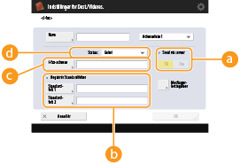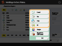 Vælg de funktioner, der skal anvendes for modtageren, fra <Fax>, <E-mail>, <I-fax> eller <Fil>.