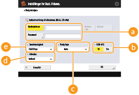 Hvis du forsøger at sende til en filserver/Avanceret område, hvor <Bekræft før afsendelse> er indstillet til <Til>, vises et skærmbillede, der beder sig om at indtaste brugernavn og password. I dette tilfælde skal du indtaste det tidligere indstillede password. Ønsker du at registrere en filserver/Avanceret område i en gruppeadresse, skal du indstille <Bekræft før afsendelse> til <Fra>. Du kan ikke sende til en gruppeadresse inklusive en filserver/Avanceret område, hvor <Bekræft før afsendelse> er indstillet til <Til>.