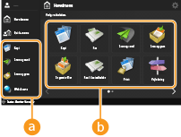, der vises på Hovedmenu og skærmbilledet Grundlæggende funktioner, for at tilpasse skærmbilledet, som f.eks. omarrangement af knapper eller oprettelse af en genvejsknap. Det er kun en administrator, der kan tilpasse hovedmenuskærmen. Tilpasning af touchpanelet