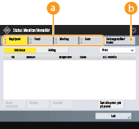 (Status Monitor/Annullér), vises skærmen <Status Monitor/Annullér>. På dette skærmbillede kan du tjekke printnings- og overførselsstatussen samt den resterende toner- og hukommelsesmængde.