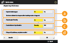 Hvis du indstiller <Til>, vises Quick-menuen efter jobudførsel. Hvis du indstiller det til <Fra>, vises den funktion, der bruges før jobudførsel, igen.