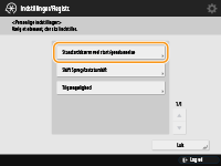 Hvis maskinen er konfigureret, så brugere skal logge ind, når den starter ( Angivelse af hvornår skærmbilledet til login skal vises), vises <Standardskærm ved start/gendannelse> som et emne i <Personlige indstillinger>. Det skærmbillede, der vises, når maskinen starter, kan indstilles for hver enkelt bruger.