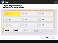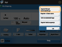 De kaskadekopiindstillinger, der er lagret i <Tidligere indstillinger> eller <Favoritindst.>, ændres til de lokale kopiindstillinger, når maskinen eller kaskadekopiprinteren genstartes. Hvis du vil hente <Tidligere indstillinger> og udføre kaskadekopiering, skal du tænde maskinens hovedstrøm og opdatere oplysningerne for den kaskadekopiprinter, når den tid, der er angivet i <Ventetid for opkobling ved opstart>, er udløbet. <Timeout for afsendelse af fjernkopiering>