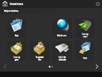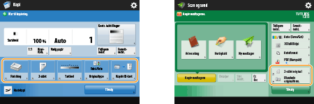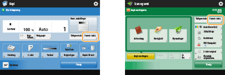 Du kan ændre de indstillingsknapper, der vises på skærmbillederne Grundlæggende funktioner (til kopiering, faxning og scanning). Du kan også vise et andet skærmbillede for grundlæggende funktioner, der er tilpasset hver enkelt bruger, der er logget på.