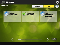 For nemmere brug af Hovedmenu og skærmbilledet Grundlæggende funktioner for hver funktion kan du tilpasse skærmbilledet ved at omarrangere knapper eller oprette genvejsknapper. Du kan endvidere arbejde mere effektivt ved at bruge Quick-menu til at registrere ofte anvendte funktioner eller de personlige indstillinger for at tilpasse brugsmiljøet til dine ønsker.
