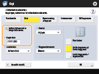 Datoerne, der er angivet i denne maskine, vises i <Angiv dato>. For at integrere andre datoer skal du indtaste med taltasterne.